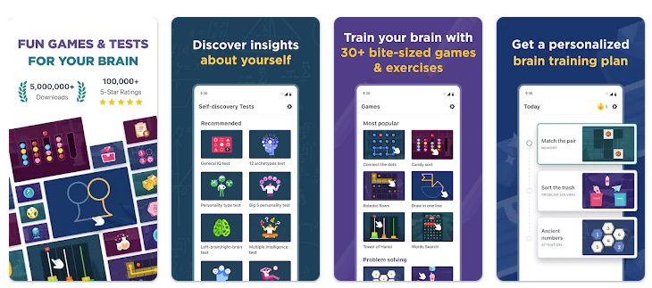 The app’s sessions are short, challenging, and designed to test reaction time and problem-solving skills. It even includes personality and emotional intelligence quizzes, which add variety beyond brain drills.