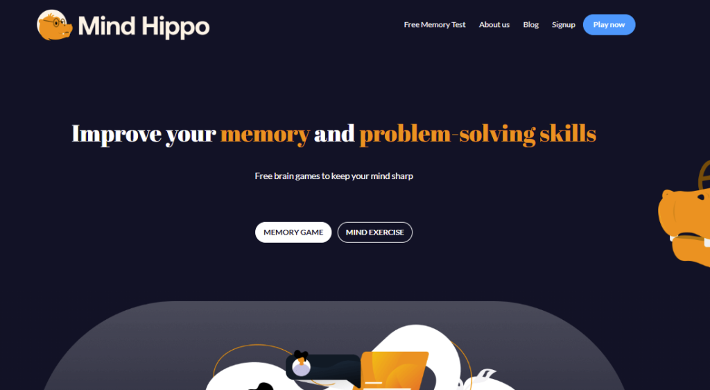 - Mind Hippo: A free, web-based brain training platform that focuses on memory and problem-solving games you can access on any device. Its activities are designed to be quick and engaging, making them easy to fit into brief breaks.