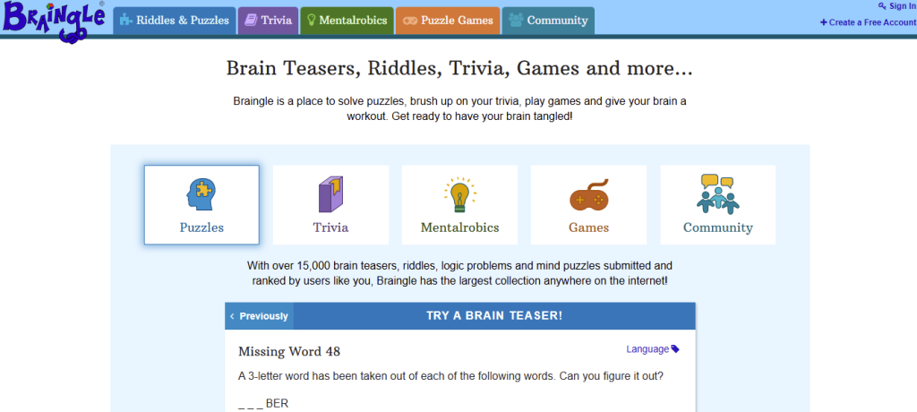 - Braingle: A vast library of brain teasers, riddles, and interactive puzzles for leisurely mental engagement.